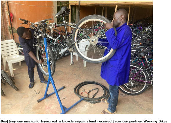 One of the most common reasons people stop bicycling is because their bicycles breaks and maybe it’s a flat tire, absence of pressure or a bent wheel. No matter the severity of the problem, if the bike owner doesn’t know how or have the time to fix their bike or there is no bike shop within walking distance, they will park the bike, sometimes for longer periods. Our solution was to put up a bicycle shop consisting of bicycles, parts and tools in that people or organizations that have obtained a bike from us can easily assess bike repair services, volunteer mechanics can train on job from walk in clients, those interested in renting, bike purchase etc. Profits for the shop support CFF’S organizational programs, pay shipping and customs costs of bicycle shipments and also general organizational administrative expenses.